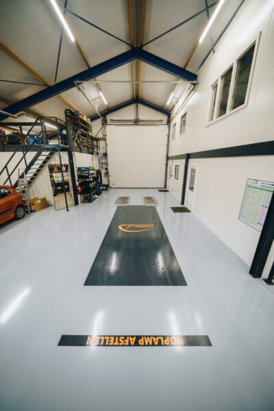 Voor garage Oostpoort in Harlingen hebben wij een bestaande werkplaatsvloer aangepast en opnieuw afgewerkt volgens de nieuwste regelgeving. Door aangescherpte eisen rondom het afstellen van koplampen moet de vloer in een specifiek gedeelte voldoen aan strikte vlakheids- en reflectievoorwaarden.